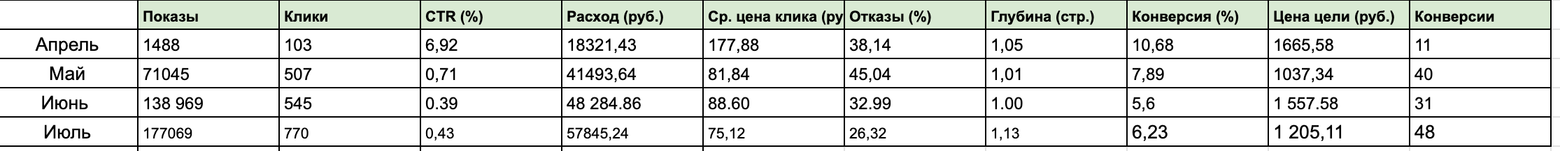 В этой нише огромная конкуренция и учитывая небольшой бюджет мы занимаем 3-4 позицию в выдаче. При этом мы собираем нужное количество качественных лидов как с сайта, так и с карт